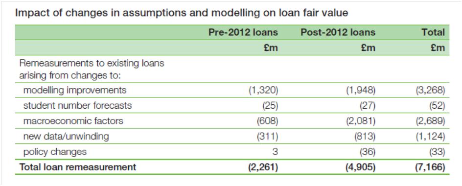 As can be seen from the table below, “Fair Value movement” for student loans amounted to a non-cash cost of over £14billion.